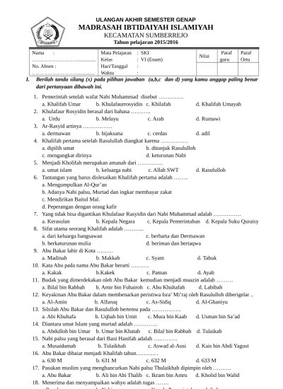 Jawaban soal ski sma ma kelas xi (11) semester genap pilihan ganda islam pada masa khulafaur rasyidin 1.sebutan khalifaturrasulullah di berikan kepada . Kk ski kelas 5 sd dan mifull description. Latihan soal ukk ski semester 2. Prediski soal latihan dan kunci jawaban penilaian akhir tahun (pat/ukk) kelas xi mapel ski semester 2 (genap) kurikulum 2013 ta. Kelas 4 tahun pelajaran 2015/2016.